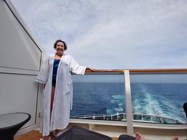 Barbara and I relaxing on the balcony of our Havana Cabana stateroom